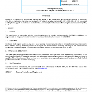 This specification, in conjunction with the general requirements for peening media covered in AMS2431, establishes the requirements for the procurement of conditioned cast steel shot with a hardness of 45 to 52 HRC.