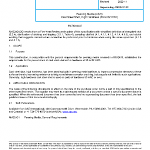 This specification, in conjunction with the general requirements for peening media covered in AMS2431, establishes the requirements for the procurement of cast steel shot with a hardness of 55 to 62 HRC.