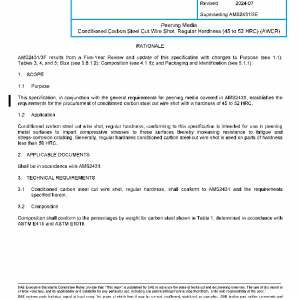 This specification, in conjunction with the general requirements for peening media covered in AMS2431, establishes the requirements for the procurement of conditioned carbon steel cut wire shot with a hardness of 45 to 52 HRC.
