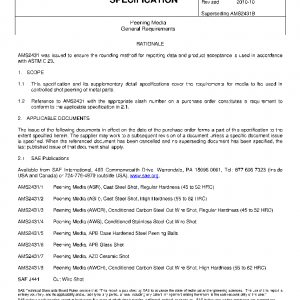 This specification and its supplementary detail specifications cover the requirements for media to be used in controlled shot peening of metal parts.
