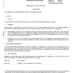 This specification establishes the requirements for computer-monitored peening of parts surfaces.