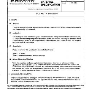 This specification covers the requirements for the electrodeposition of tin-zinc plating on metal parts and the properties of the deposit.