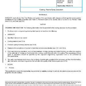 This specification covers the engineering requirements for applying coatings to parts by the plasma spray process and the properties of such coatings.