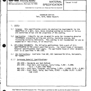 This specification covers the engineering requirements for the deposition of a thin, hard, dense chromium coating on surfaces of ferrous and nonferrous alloys and the properties of the coating.