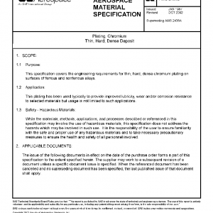 This specification covers the engineering requirements for thin, hard, dense chromium plating on surfaces of ferrous and nonferrous alloys.
