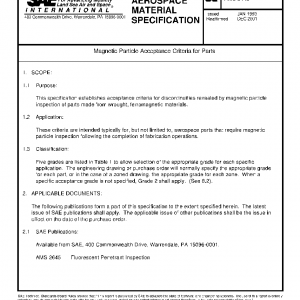 This specification establishes acceptance criteria for discontinuities revealed by magnetic particle inspection of parts made from wrought, ferromagnetic materials.