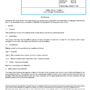 This specification covers the requirements for brush plating of tin-zinc by electrodeposition.