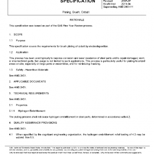 This specification covers the requirements for brush plating of cobalt by electrodeposition.