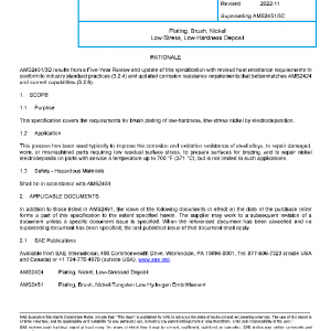 This specification covers the requirements for brush plating of low-hardness, low-stress nickel by electrodeposition.