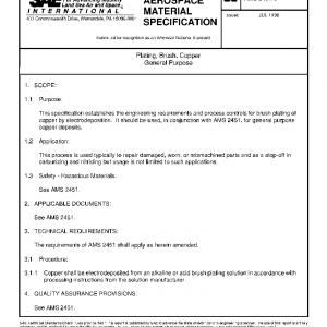 This specification establishes the engineering requirements and process controls for brush plating of copper by electrodeposition. It should be used, in conjunction with AMS 2451, for general purpose copper deposits.