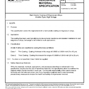 This specification covers the requirements for a hard anodic coating on magnesium alloys.