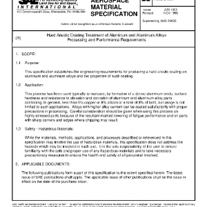This specification establishes the engineering requirements for producing a hard anodic coating on aluminum and aluminum alloys and the properties of such coating.