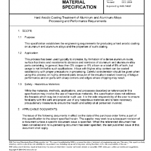 This specification establishes the engineering requirements for producing a hard anodic coating on aluminum and aluminum alloys and the properties of such coating.