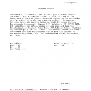 This specification establishes the engineering requirements for producing anodic coatings on aluminum alloys and the properties of such coatings.
