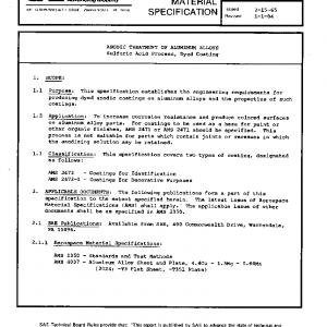 This specification establishes the engineering requirements for producing dyed anodic coatings on aluminum alloys and the properties of such coatings.