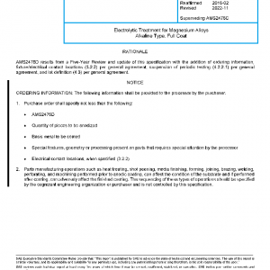 This specification establishes the engineering requirements for producing anodic coatings on magnesium and magnesium alloys, from an alkaline electrolyte, and the properties of those coatings.