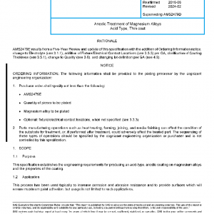 This specification establishes the engineering requirements for producing an acid-type, anodic coating on magnesium alloys and the properties of the coating.