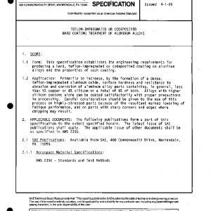 This specification establishes the engineering requirements for producing a hard, teflon-impregnated or codeposited coating on aluminum alloys and the properties of such coating.