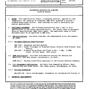 This specification covers a blackening solution, applied at room temperature, for touch-up of blackened (AMS 2472) aluminum to provide a uniform ebony-black surface. Such coatings are used in decorative and optical applications.