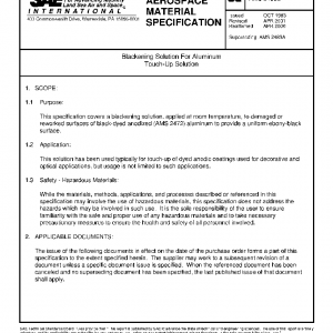 This specification covers a blackening solution, applied at room temperature, to damaged or reworked surfaces of black-dyed anodized (AMS 2472) aluminum to provide a uniform ebony-black surface.