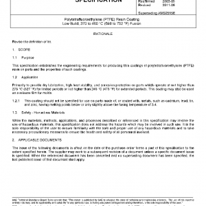This specification establishes the engineering requirements for producing thin coatings of polytetrafluoroethylene (PTFE) resin on parts and the properties of such coatings.