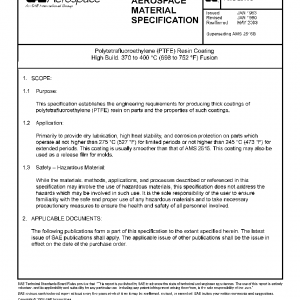 This specification establishes the engineering requirements for producing thick coatings of polytetrafluoroethylene (PTFE) resin on parts and the properties of such coatings.