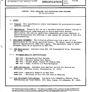 This specification covers requirements for poly-monochloro-para-xylylene coatings.