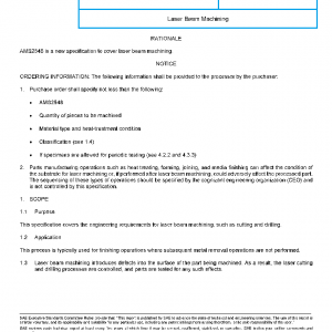 This specification covers the engineering requirements for laser beam machining, such as cutting and drilling.