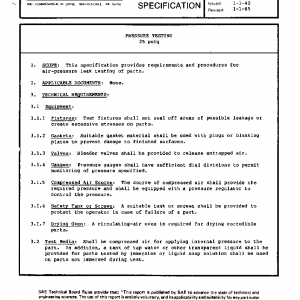 This specification provides requirements and procedures for air-pressure leak testing of parts.
