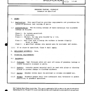 This specification provides requirements and procedures for hydraulic-pressure leak testing of parts.