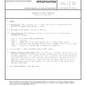 This specification provides requirements and procedures for hydraulic-pressure leak testing of parts.