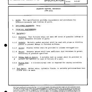 This specification provides requirements and procedures for hydraulic-pressure leak testing of parts.