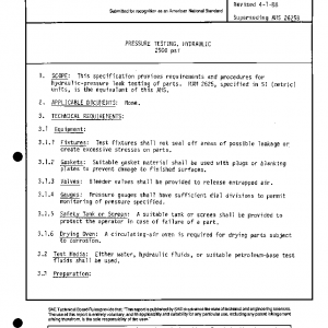 This specification provides requirements and procedures for hydraulic-pressure leak testing of parts. MAM 2625, specified in SI (metric) units, is the equivalant of this AMS.