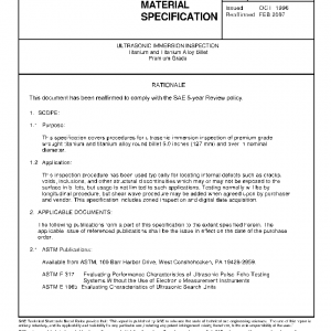 This specification covers procedures for ultrasonic immersion inspection of premium grade wrought titanium and titanium alloy round billet 5.0 inches (127 mm) and over in nominal diameter.