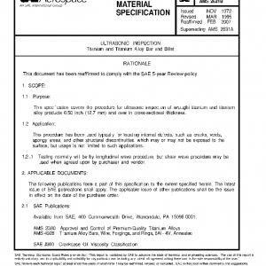 This specification covers the procedure for ultrasonic inspection of wrought titanium and titanium alloy products 0.50 inch (12.7 mm) and over in cross-sectional thickness.