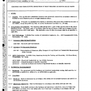 This specification establishes hardness and electrical conductivity acceptance criteria of finished or semi-finished parts of wrought aluminum alloys.
