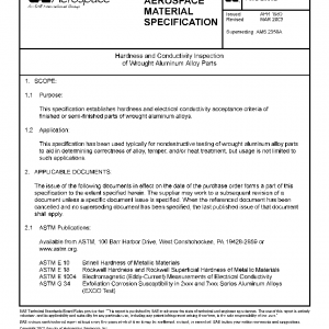 This specification establishes hardness and electrical conductivity acceptance criteria of finished or semi-finished parts of wrought aluminum alloys.