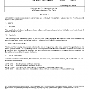 This specification establishes hardness and electrical conductivity acceptance criteria of finished or semi-finished parts of wrought aluminum alloys.