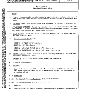 This specification covers the engineering requirements for production of brazed joints in parts made of iron, nickel, and cobalt base alloys by use of silver alloys and the properties of such joints.