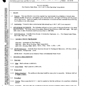 This specification covers the engineering requirements for production of brazed joints between flexible metal hose, and similar parts such as bellows, and rigid end fittings and the properties of such joints. Parts are usually made of austenitic corrosion and heat resistant steels but may be of carbon or low-alloy steels.