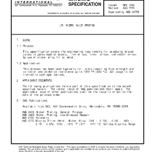 This specification covers the engineering requirements for producing brazed joints in parts made of steels, iron alloys, nickel alloys, and cobalt alloys by use of nickel alloy filler metal.