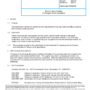 This specification defines the procedures and requirements for joining metals and alloys using the electron beam welding process.