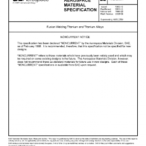 This specification defines the procedures and requirements for fusion welding titanium and titanium alloys and the properties of such weldments.