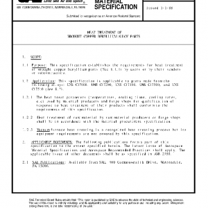 This specification establishes the requirements for heat treatment of wrought copper beryllium parts (See 8.1.1) by users or by their vendors or subcontractors.