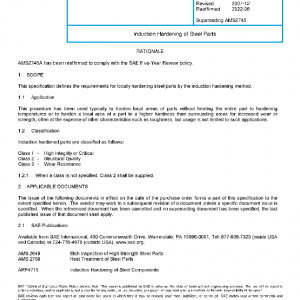 This specification defines the requirements for locally hardening steel parts by the induction hardening method.