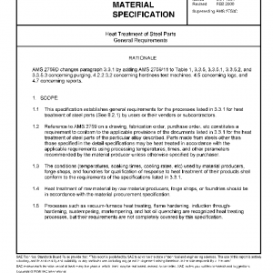 This specification establishes general requirements for the processes listed in 3.3.1 for heat treatment of steel parts (See 8.2.1) by users or their vendors or subcontractors.