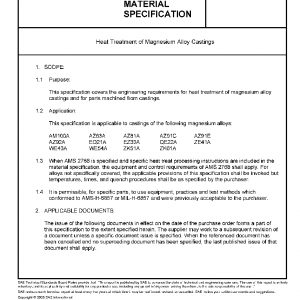 This specification covers the engineering requirements for heat treatment of magnesium alloy castings and for parts machined from castings.