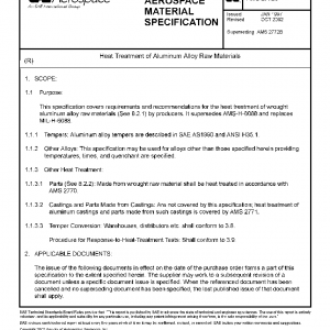This specification covers requirements and recommendations for the heat treatment of wrought aluminum alloy raw materials (See 8.2.1) by producers. It supersedes AMS-H-6088 and replaces MIL-H-6088.