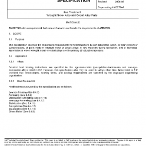 This specification specifies the engineering requirements for heat treatment, by part fabricators (users) or their vendors or subcontractors, of parts made of wrought nickel or cobalt alloys, of raw materials during fabrication, and of fabricated assemblies in which wrought nickel or cobalt alloys are the primary structural components.