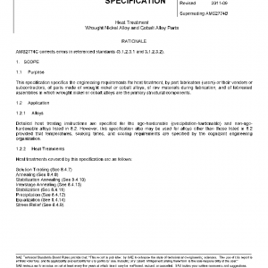 This specification specifies the engineering requirements for heat treatment, by part fabricators (users) or their vendors or subcontractors, of parts made of wrought nickel or cobalt alloys, of raw materials during fabrication, and of fabricated assemblies in which wrought nickel or cobalt alloys are the primary structural components.